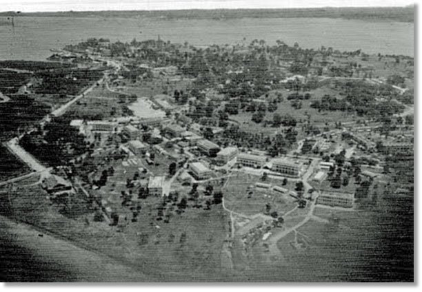 Small aircraft are very snug, and the Auster was delightful, and the first time in two years I’d flown in a light aircraft. It was over a year since Roly had piloted a plane, I’m not sure what, but this was a completely new type and unlike the old Tiger Moth had a self starter - no swinging the propeller by hand! We taxied to the centre of the runway, got the all clear from the control tower, and off we went. There were restrictions that kept us to coastal areas but I managed to get some photos of warships, our airfield, the accommodation blocks, and the road leading into Changi village, though palm trees camouflage the houses. Flying at about 6000 feet and keeping a watchful eye for other planes it was soon time to return. Kept away until another aircraft had landed, Roly made an approach that was rather too high for us to finish near the parking place, so completed another circuit and down we came, unfortunately with a three foot bounce that was noted by all. It was remarked upon by the WingCo., who came up to us when we got out but otherwise appeared satisfied. We thanked him for his remarkable generosity, with the realisation that it had been a “one off” occasion.