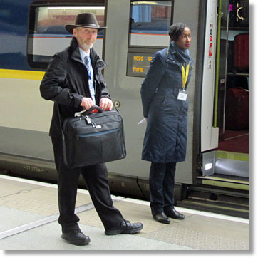 Photo attached of Martin waiting for his charges to sort themselves out to board the first leg of the tour at St Pancras, a Eurostar hop to Paris.