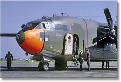 Here's a contemporary picture for those who like that sort of thing! I am in conversation with customs officer Reg Duffield as we meet an Italian Air Force C119.