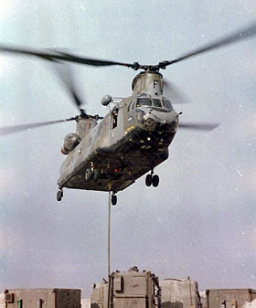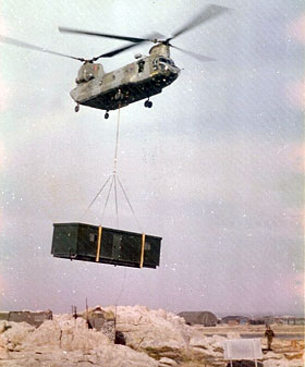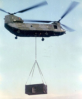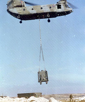 By late May/early June MPA provided all the air traffic services and Penguin Radar was retired. The radar was uplifted and was to be returned to the UK. These are a few pictures of the air lifting by Chinook.