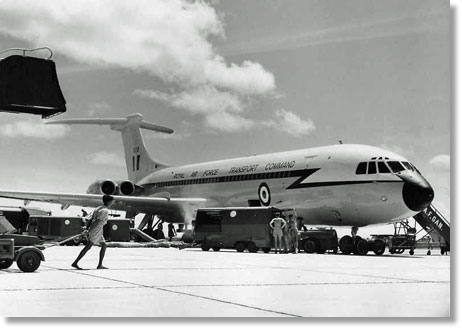 I had not met any other team members or done any mobile training. A bus picked me up at my new MQ and we were soon at Lyneham and onto a Britannia (497) bound for the Caribbean via Gander. On the same aircraft was the RAF Rugby team going on tour. They were with their manager, an Air Commodore.