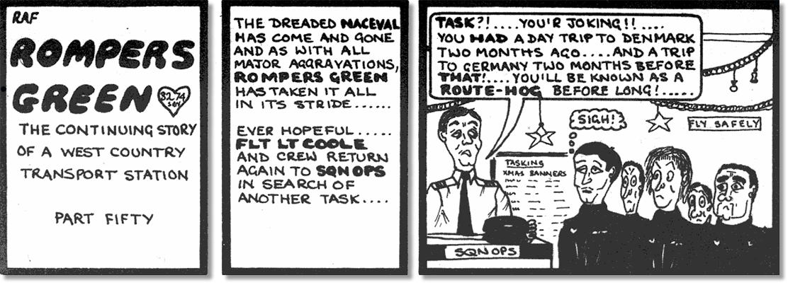 We had a young officer on the team for a short while, Fg Off Jeff Jones, who would say, "The trim is fine, don't move anything." I do recall his favourite saying though, "You'll be defeating the object of the whole exercise". I find myself still using that saying quite often!