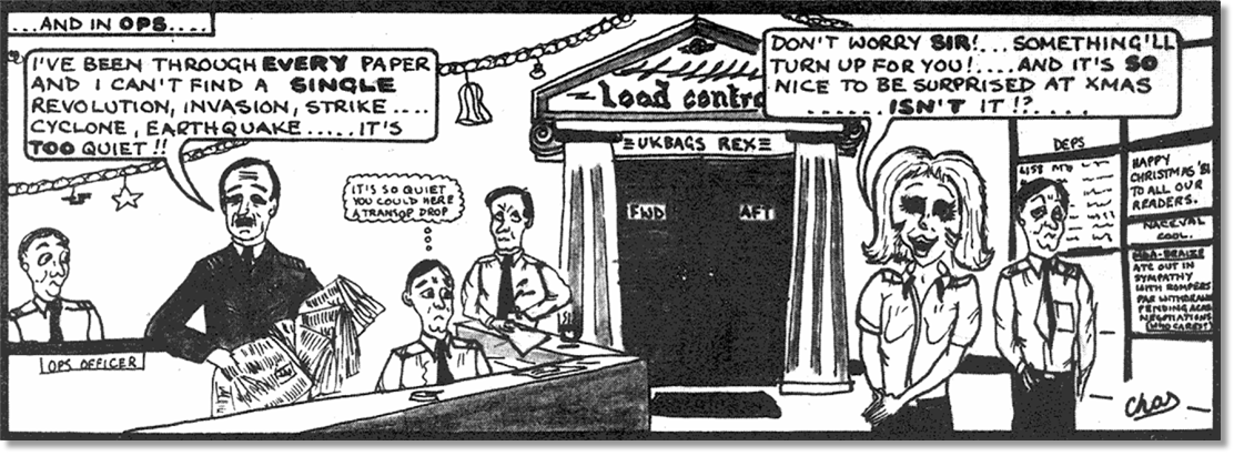 As a movements-qualified flying officer on the Mobile Explosives Team at Chilmark, I got the call to go to Brize and become the MAC on a return trip to Ascension. I recall receiving a pre-flight briefing from the DSAMO – Tony Davenport I think. It was a mainly BA operating crew, but OC 216 Sqn was in the right-hand seat as part of his work-up training. I can remember that Andy Kime met the aircraft on arrival at Ascension. He was the DAMO of the day, but I seem to think that for some reason his boss was a naval Lt Cdr – or have I got that wrong? Perhaps Andy can shed some light. As to the year, my best guess is 1983.