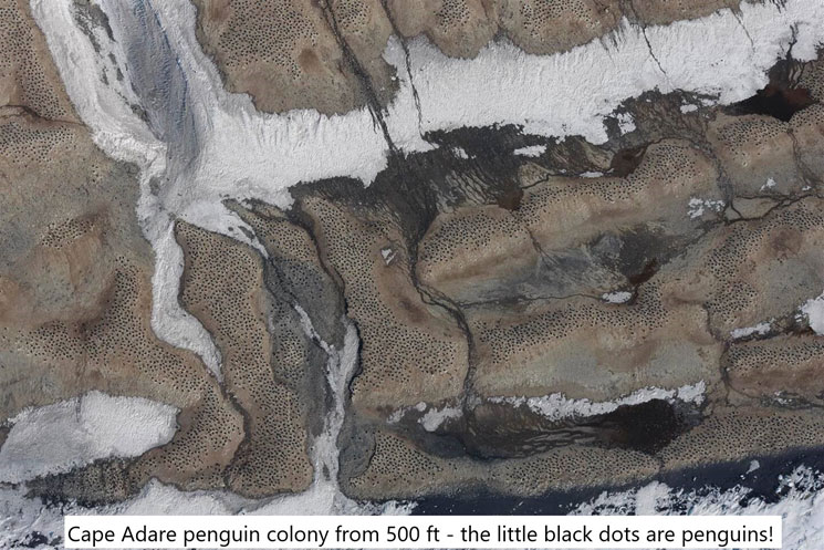 Counting Penguins: Penguin populations at several coastal colonies were counted using aerial reconnaissance, with high resolution photos taken from the C130 para door then analysed back at the research centre to determine an accurate count of breeding pairs and establish annual population trends.