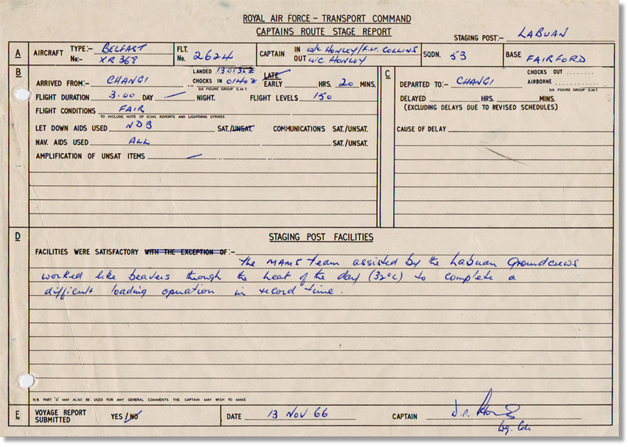 Perhaps an OBA member might recall the recognised/allotted time for that Belfast load during RAF service; at the time there was no purpose in pursuing things, indeed not much time to do so either.