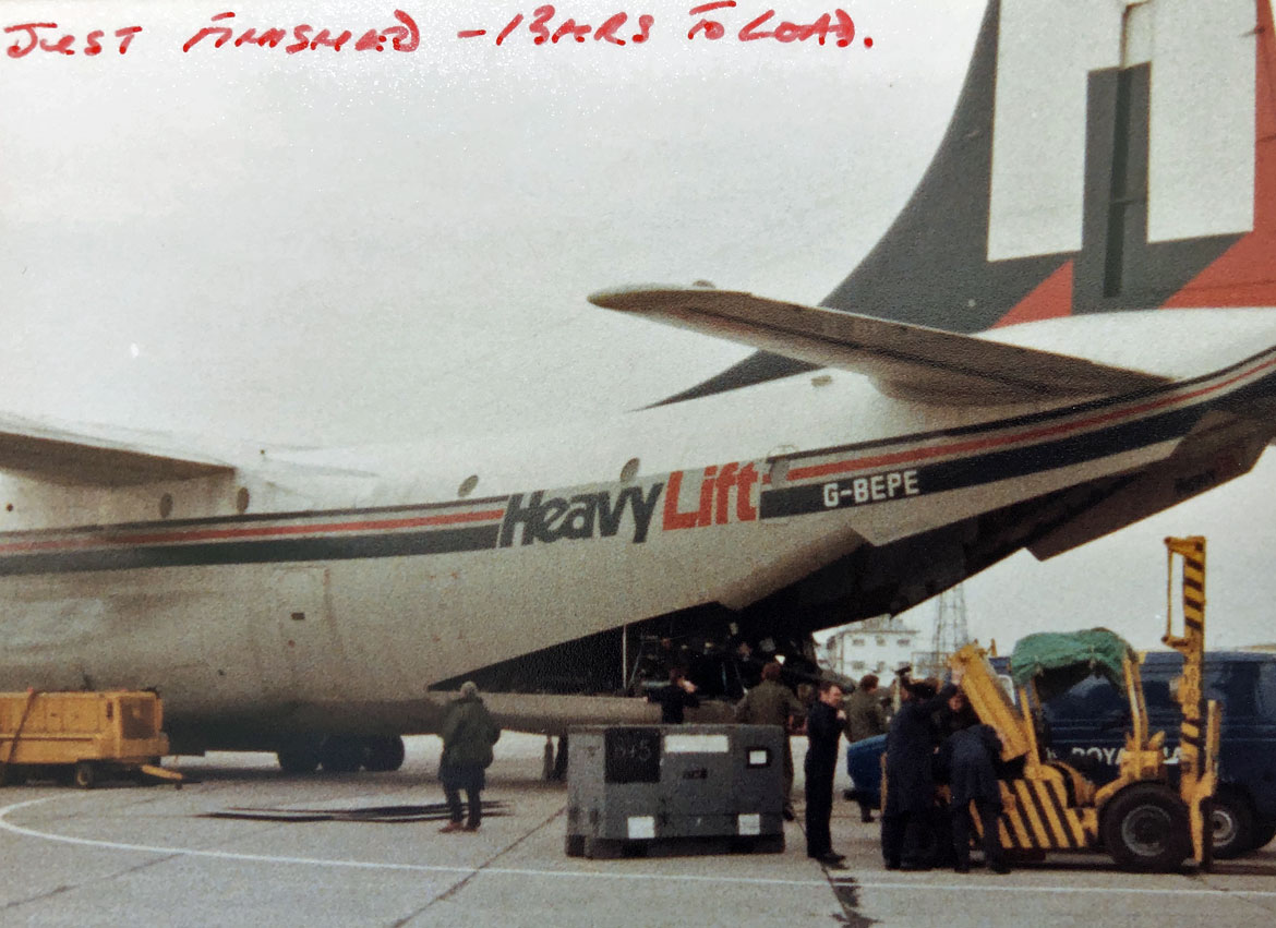 A Houchin ground power unit and various boxes of a/c spares needed to be loaded and, rather than use the dreaded BFLP, the late Bob Turner grabbed an 18,000lb forklift and we teased it in through the 13ft high freight door. Not an approved method of loading, but nobody was watching, so who cares?