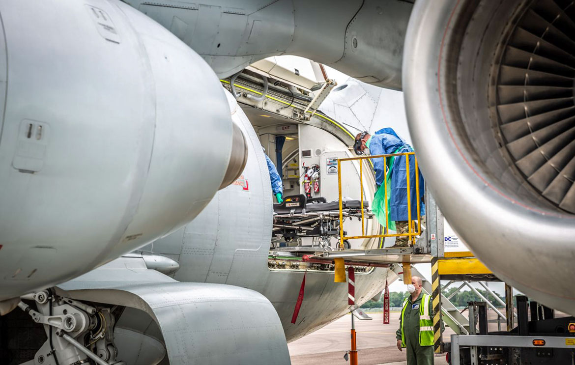 In addition, Atlas, Hercules, Globemaster and Voyager are all able to transport patients and medical personnel, similarly Puma and Chinook helicopters.