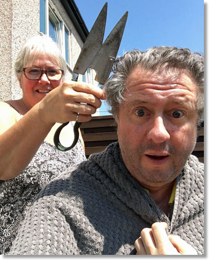 You asked for photo's of haircut or lack thereof so please find one attached. Hair referred to as the lawn and beard as the hedge. I must admit that it will be nice to get them both trimmed again once we are released from lockup.