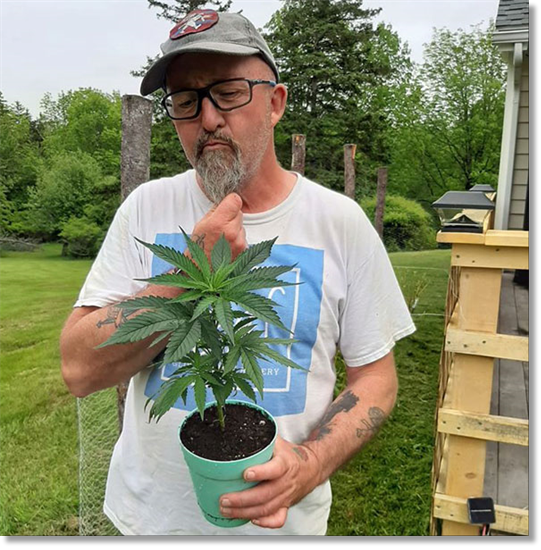 David Jarvis (RAF) of Lunenburg, Nova Scotia, is checking on his <ahem!> tomato plant