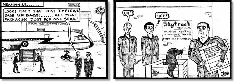 Thanks for the latest. Brought back some pleasant memories. Nice to see Tony Last and Jim Bissell and of course Paul "Porky" Newman. Sad to read that Terry Christie is no longer with us-what happened? He was a rogue on my shift at Brize (so was Steve "Psycho" Smith) and on my shift as ASI. I always remember him saying to the Shift as soon as I came off the plane at ASI and saw him I would call him by his nickname (which in these days of PC I cannot mention now) which I did and from then on that was what the Shift called him. Always in trouble (incident with a WRAF/newly painted tennis court/reporting short shift next day with green paint on his knees springs immediately to mind).