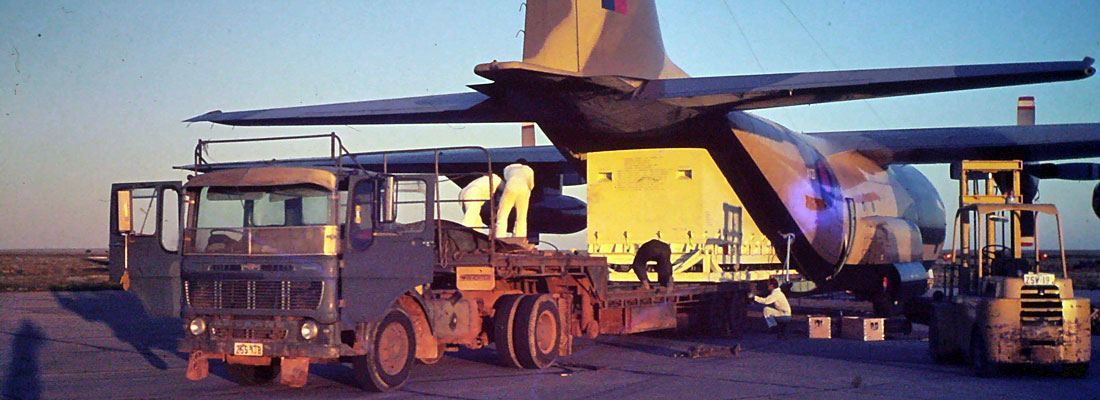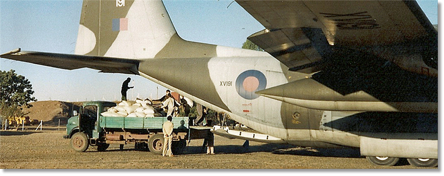 My team was working that day; we had a very early start, up at 0500hrs and chocks at 0700hrs. We flew around for a couple of hours to give the flight deck crew a chance to do a bit of low-level and sightseeing flying, then it was down to Assab on the Red Sea coast to pick up our first load. To say this place was hot was an understatement! You could feel the walls of the aircraft heating up as we descended and the humidity was horrendous. Then it was a scramble to load three 14,000lb stacks of grain sacks before taking off for the distribution centre at Mekele up in the mountains. We did this run three times each day and by the time we got back to the hotel we looked like walking dungheaps. It was noticeable that the notoriously bad tempered and rapacious flies that haunted the city would rather fly into the open mouths of lizards than land on us!