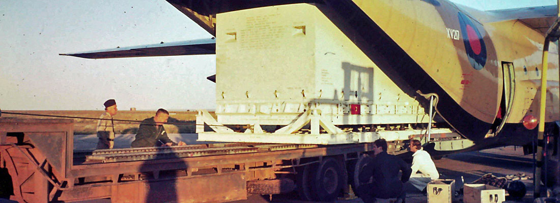 In mid-1974 JATE was given the task of moving the first Stonechat motor from RAF Abingdon to Woomera Rocket Range, Central Australia. The rocket motor was encased in a special travelling container 36 ft long and almost 8 ft square. The container was slid into an RAF C130 from a CONDEC 25K, bolted solidly onto the C130 roller conveyor system, and once in the Herc could only be off–loaded at its destination onto a similar flat-bed truck or trailer. With the container in position, movement from the front to the rear of the C130 fuselage (and so to the chemical toilet on the ramp) was virtually impassable, and in-flight jettisoning was impossible. Hence the JATE MOVO (me) & and one of our ENGOs, had to pre-position in Singapore to meet up with the load for the short(er?) flights from RSAF Base Tengah to RAAF Base Darwin, then onto Woomera the following day – at least that was the plan. Oh, and any in-flight emergency involving the solid fuel rocket propellant would have resulted in us being the first C130K in orbit – albeit very briefly!
