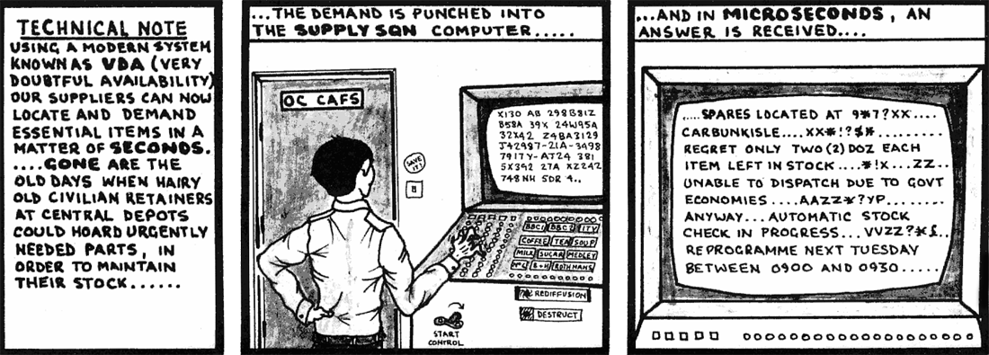 It went on like this for a few weeks, reporting to, if memory serves me correctly, this Chief Tech who was an Airframes Fitter and who couldn't be bothered with an SAC Storeman.