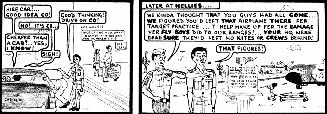 Loads of spares and the other paraphernalia to keep the detachment going were consolidated at either Brize Norton for Britannia schedules or Lyneham for C130 schedules, both of which were fortnightly. A logistics recipe for disaster, as readers will imagine. But, as that Irish comedian Jiminy Cricket used to say, "...and there's more!"