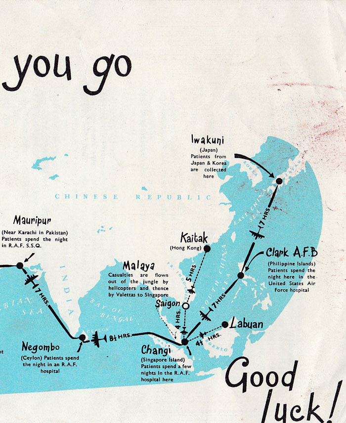 I was only 6 months old but some research has revealed that the flight took 3 to 4 days and routed: Rome, Pakistan, Rangoon then Singapore. To think that last year we flew Heathrow to Manila non-stop in about 13 hrs!