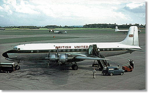 The aircraft we flew out on was a BOAC Argonaut, a Canadian conversion of the DC4/C54 design where they chucked away the radial engines and installed four Rolls Royce Merlins which overcame the drag and resulted in an immense increase in cruise speed.