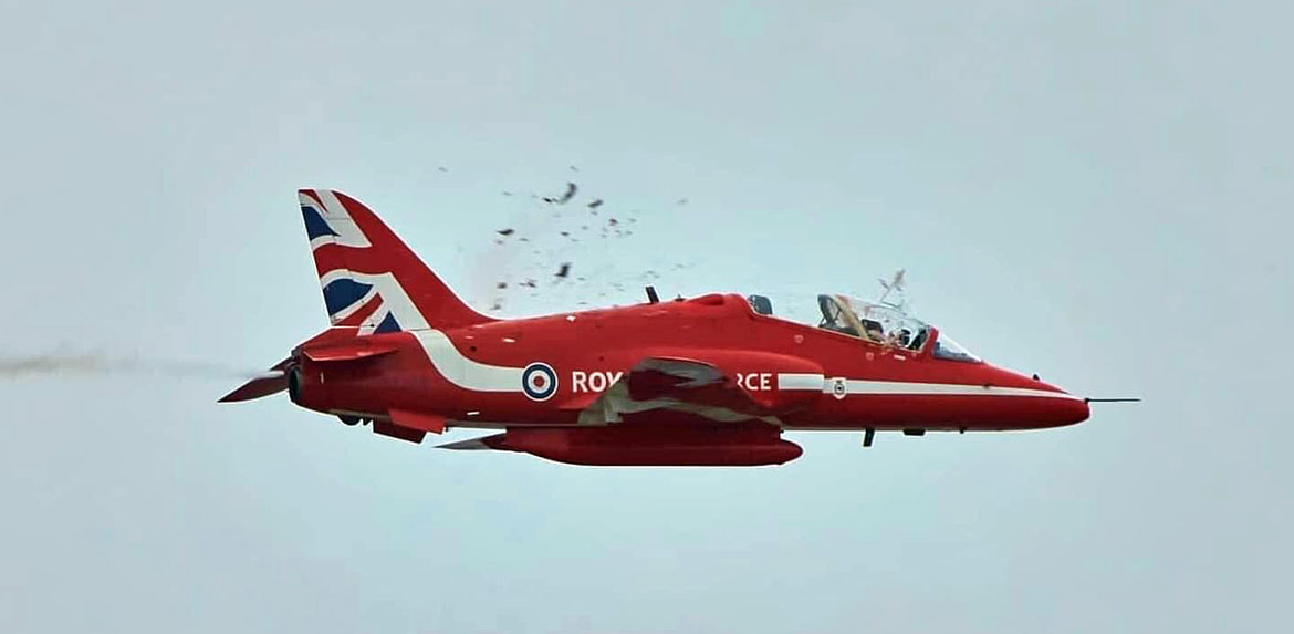 BREAKING NEWS (No pun intended) Red Arrows Display Halted as Cockpit Shattered by Bird Strike