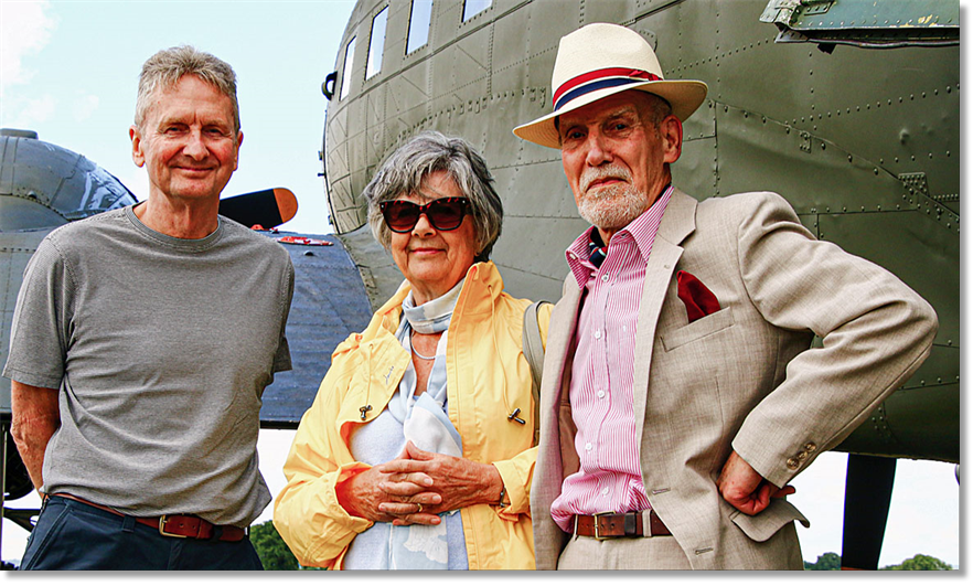Here’s another photo of us, Heather and I and our chauffeur, Roger, our next door neighbour who drove us to Headcorn in his Porche 4x4. He was a Sea Capitan in the Mercantile Marine, he went around the world a few times, and he keeps me informed of the tales of the sea.