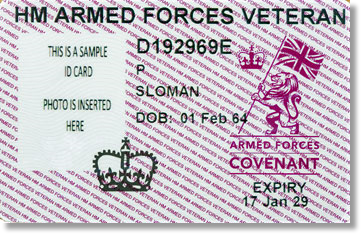 The Veterans’ recognition scheme (also known as the Veterans ID Card) has a two-phase rollout. Phase one is complete, with Service leavers receiving a recognition card as part of the discharge process since 2019. If you have discharged and not received your card within your service leavers pack, please contact 0800 085 3600 or your old unit directly. Unfortunately, if you have already received your recognition card and since lost it, changed name or need to change any details on it there is no current process in place to replicate or reproduce cards at this stage.