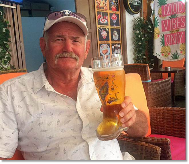 Graham Cotton enjoying a boot of beer in Rhodes Old Town