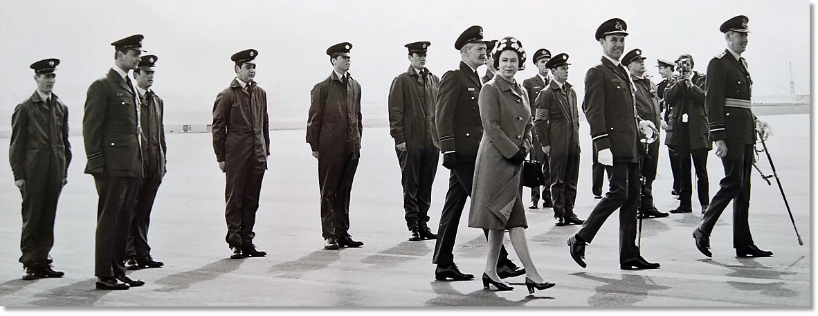 I stood waiting for Her Majesty to appear but no one emerged for what seemed like several minutes. Eventually a figure appeared, an irate Air Commodore Equerry who came running towards me shouting, “Put the rear steps in!” So, I dutifully obliged whilst he berated me and wanted to know my name and said, “I hope you realise that you have kept Her Majesty waiting for 10 minutes!” (My claim to fame.)