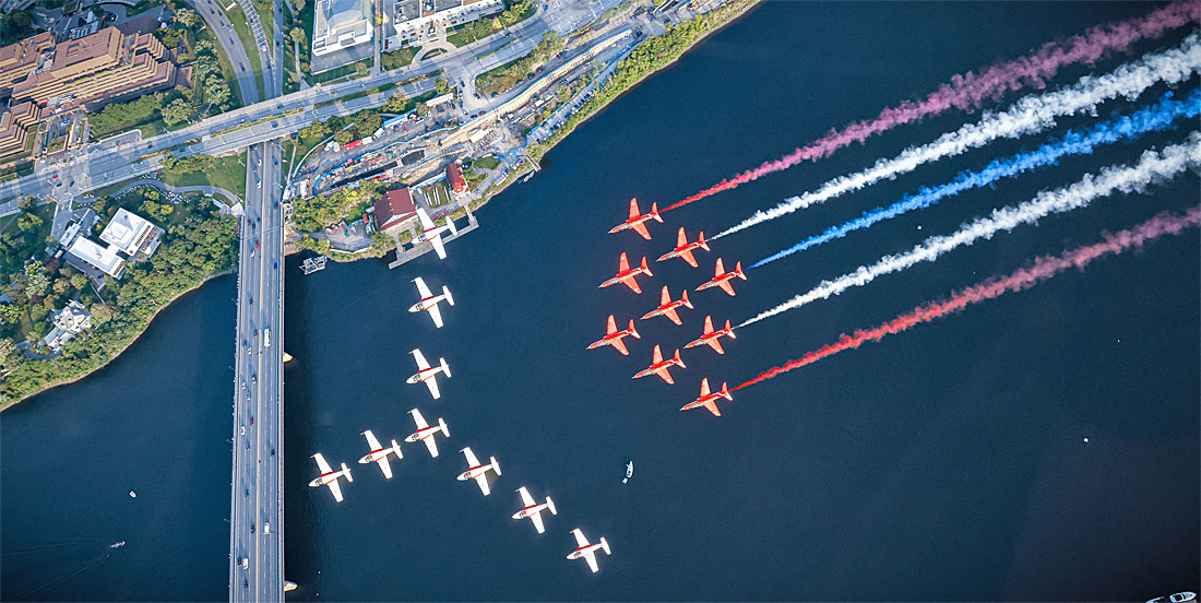 The Red Arrows with the Canadian Forces' Snowbirds over Ottawa