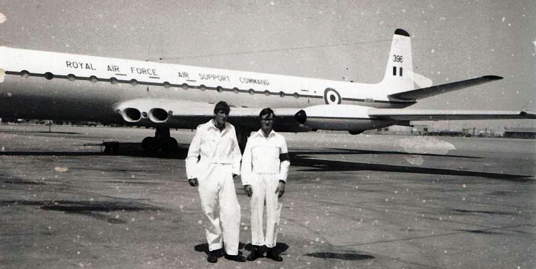 Keith Sharp and Myself at El Adem in 1969 doing VIP Duties on the Duke of Edinburgh's Comet