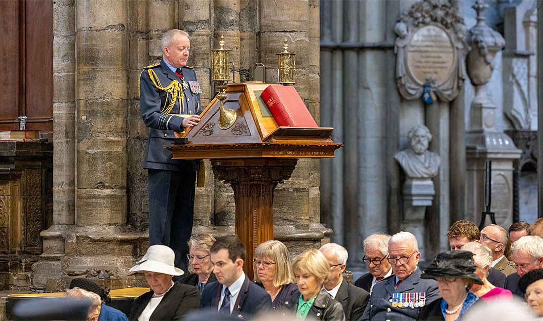 “In this Abbey church, where our nation so often gathers to remember, to celebrate and to mourn, we give thanks for the dedication and daring of members of the Royal Air Force and Allied Air Forces during the Battle of Britain. Their sure courage halted the advance of a terrible tyranny. They held fast in days of greatest danger. For their resilience and their skill we give thanks, for their pain and loss we grieve. Once again, we commit ourselves to the duty of an honest remembrance.”