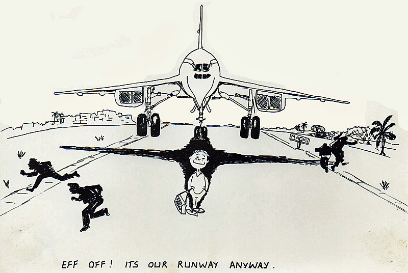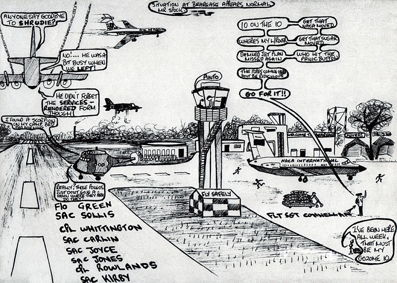 The final "Bearease" pic must have been amended hundreds of times to reflect the Movers at Belize. I recall we also had a T-shirt made up depicting a beautiful Caribbean Island scene with a VC10 overflying with a caption that read 'We Came In Search of Paradise and got diverted to Belize'.