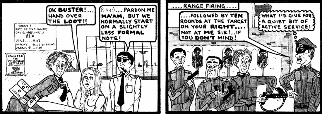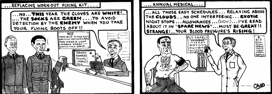 The snake cartoon is me as Fg Off Fearless when my movers found a live snake in palletised freight we left on stillage overnight to be loaded on a Herc the next morning. They were all too scared to tackle it, so armed with a broom and machete I took it on. It wasn't a grass snake but it wasn't much bigger. I winged it with the machete and it disappeared never to be seen again.
