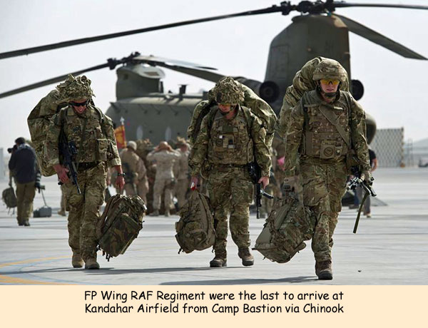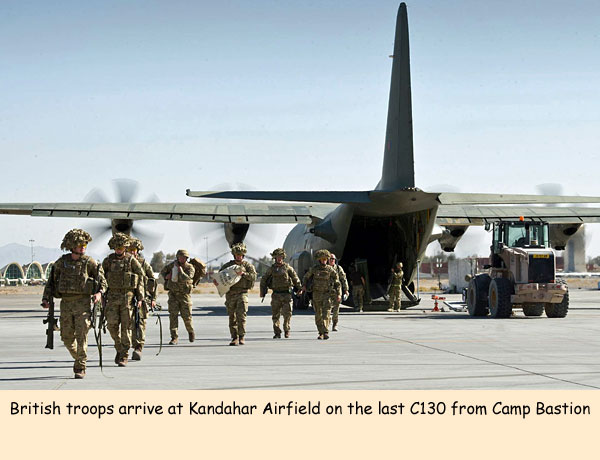 Seventeen waves of two C130 Hercules transport aircraft and a final wave of two Chinook helicopters worked tirelessly alongside United States Marine Corps aircraft to ensure the final coalition troops were able to safely leave the one time home of up to 40,000 troops.