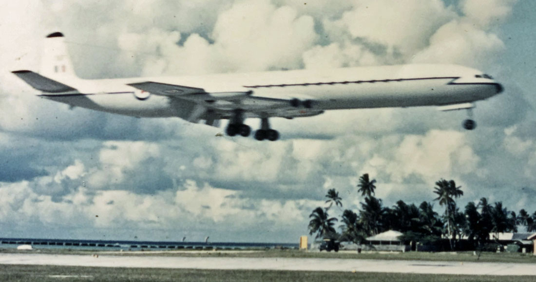 The V Force staged through on various Operations, visiting FEAF and NEAF Argosys, the Royal Navy calling in to pick up mail and play soccer, weekly British Eagle were on charter, (one digging up the golf course during a squall) the monthly Hastings to Karachi, with alternate months staging via Katunayake, all were somewhat a diversion from our 'bread and butter' which was Transport Command. Life was pretty hectic but idyllic with much on offer to occupy off duty hours. Later in my tour I remember the new addition coming into Service, Belfast lumbering in for a short stopover.