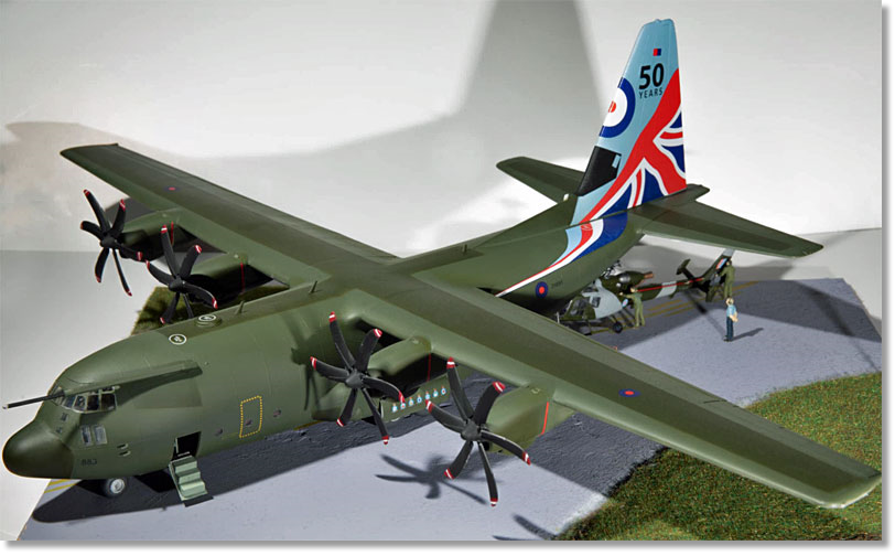 SCENE DETAILS The scene features RAF 215 Squadron Argosy C Mk1 'XR108' and 48 Squadron Hercules C Mk1 'XV306' flying over RAF Changi, Singapore during the late 60s. The Hercules is making a low level drop as part of a training exercise. My customers father transitioned from the Argosy to the Hercules in 1968 and the painting is symbolising this changeover. As pointed out by a few people, I am aware that the Hercules number is a slightly later arrival to RAF Changi. However, both aircraft are significant to my customer and his father and therefore minor artistic license has been permitted.