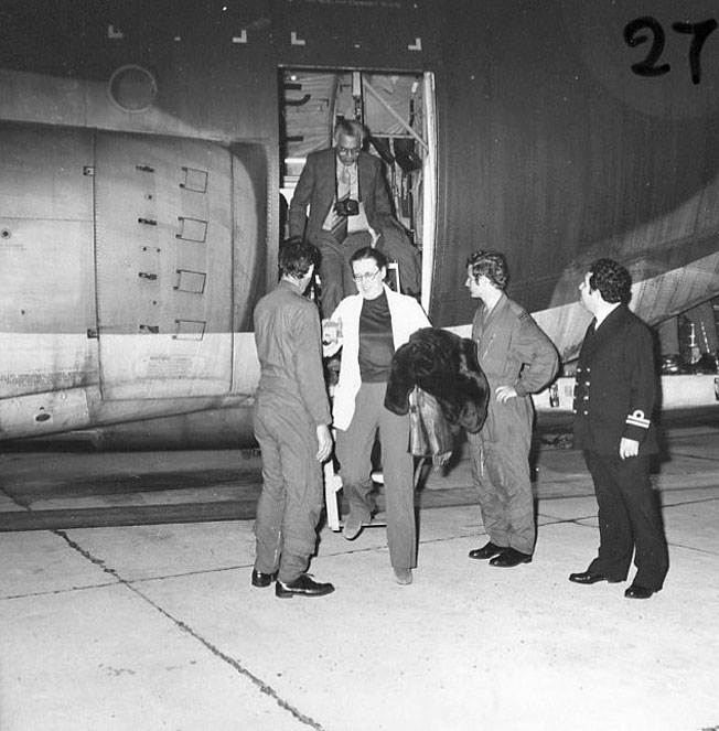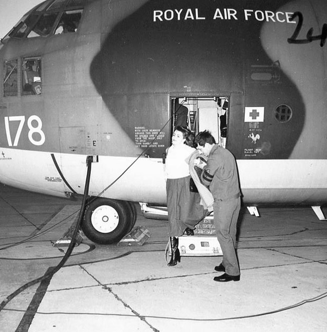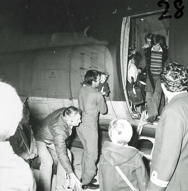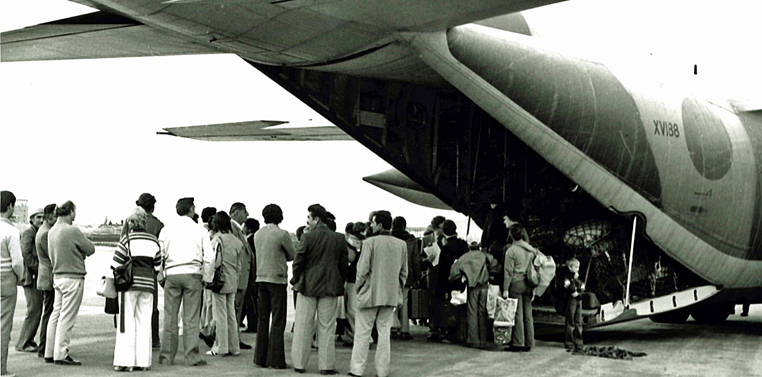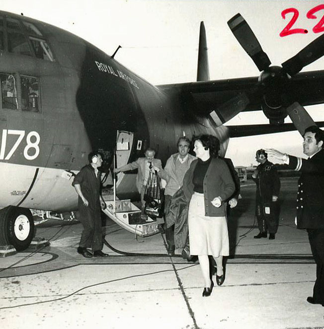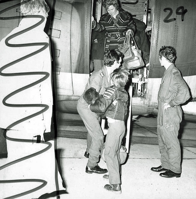 Suddenly, a woman said to me, “What’s that you’ve got there, a flag? Let's wave it!” so we did, jumping up and down waving this huge bedspread like a pair of excited idiots. The C-130 landed and taxied over to the hardstanding to our front. We were saved. XV188 was here.