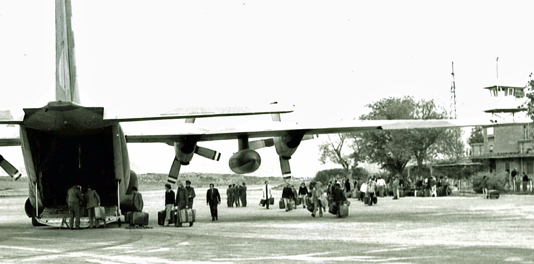 Now I’m unsure how exactly we found out about the two RAF C-130 aircraft based in Bahrain, nor how they were contacted. A vague story was heard that some of the British instructors in the telecommunications wing of the school had rigged some HF equipment and managed to talk to the aircraft crew, but I have no details. It may be untrue. My dad and our neighbour took a car in the evening to recce the local roads. They found the road out towards Ahvaz and Abadan was blocked, it was the same with the other routes out of town, but the road up to the local airport [Shahid Asiyaee] was clear. This was an almost completed new military airfield alongside the old airfield