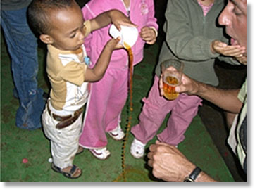 Both Terry and I had very sticky heads from being stroked by the children at the New Hope home and we were generally pretty filthy. Of course, being in transit and unwilling to unpack, we were fairly clothes critical. Terry liked to have his fill of meat to eat so we decided to go to a restaurant I knew called Carnivores, for dinner. This was a true mans world. There was a massive pit with huge lumps of road kill roasting on swords over it and the Tusker beer flowed like... well beer, all it needed was a hairdressers and a shoe shop to keep the women happy. Being blokes we skipped the soup and salad that was on offer and headed straight for the meat. With the perilous state of Terry’s stomach this was like Russian roulette but we gorged happily away at a token baked potato, beef, pork, lamb, sausages, ostrich, camel, crocodile and a few unidentifiable bits before finally knocking over the flag on the table to signify defeat. We waddled back to the hotel feeling totally stuffed. I decided to put a roll of toilet paper in the fridge for the morning just in case.