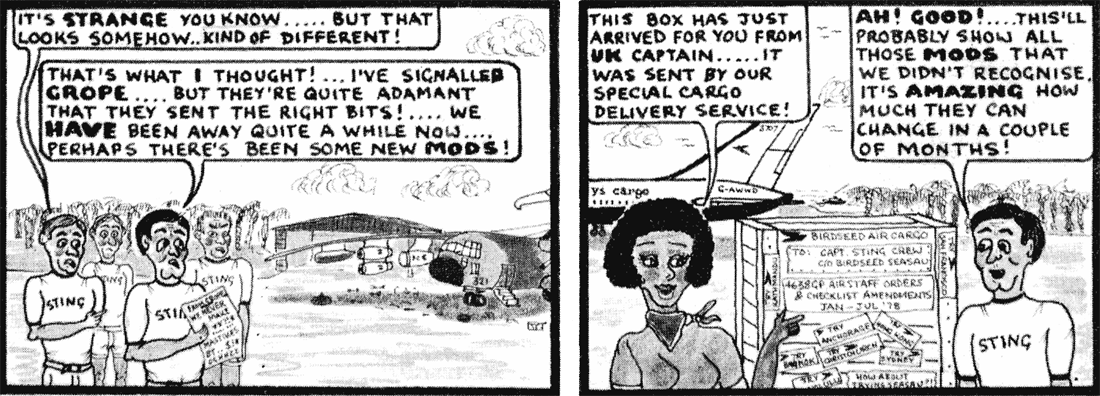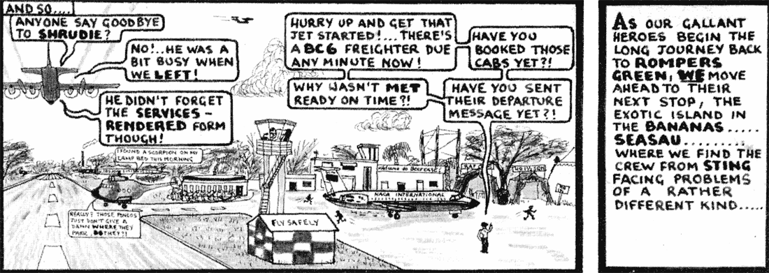 Staying with Gan, the next tangent is the universal “Tea Swindle”! Every shift, team and barrack block had its own Tea Swindle. On Gan, the Movers block had a room with fewer inhabitants and the Tea Swindle was stored there in a spare bedside locker. The first incident was after a report of scratching and scuffling in the locker a team of ‘exterminators’ with sticks and brooms attended. Forming a semi-circle around the locker, the door was flung open. Sitting in the locker snacking on the sugar was a rat! We stared at it, it stared at us, and nobody moved. Seeking to break the deadlock Dave Whyke thrust his stick at the rat, who immediately ran up the stick over Dave’s shoulder, down his back and out the door. It must have been a full minute before Dave even moved. The next time there was a similar report, an even larger contingent turned up, heavily armed. On flinging the door open, we saw a thumb-sized cockroach. it jumped in the air and spun to face us, and a nervous voice from the back of the group announced, “It's seen us!”