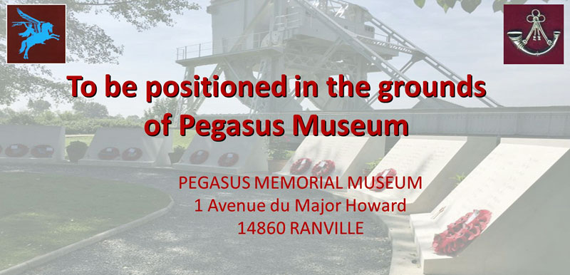 The photograph shows my Father and Major John Howard on a pre D-Day exercise. The monument, we hope will be created by Amy Goodman, sculptor and portrait artist who has created many military (Airborne) images. It will show my father sending out the code words for the capture of the two bridges, Pegasus and Horsa (Ham and Jam).
