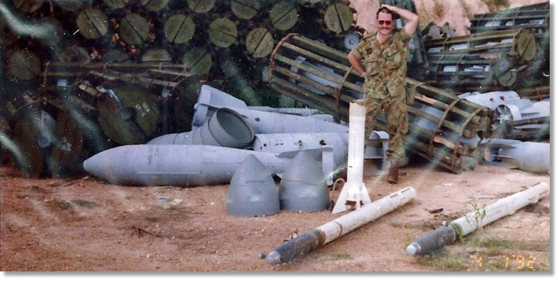 A cheerful Flt/Lieutenant armaments officer arrived and set up shop in the corner of a small empty building. From the line we assembled on the grass outside he took one bomb at a time, unscrewed the base, removed the detonater, then tipped the thermite powder within into a bucket. Having made the bomb completely safe, the base was screwed on again. To those who expressed an interest, each was given one as a souvenir. A couple of days later an admin. Corporal got wind of this and issued a notice that they were not to be taken off the camp. By then, of course, some had gone. For my specimen the only easy method I could devise was to pack it up in a parcel, and post it home with a covering letter to Mum explaining that it was safe to keep it for me. Hence my incendiary bomb, which has always been kept, though the base cannot now be easily unscrewed.