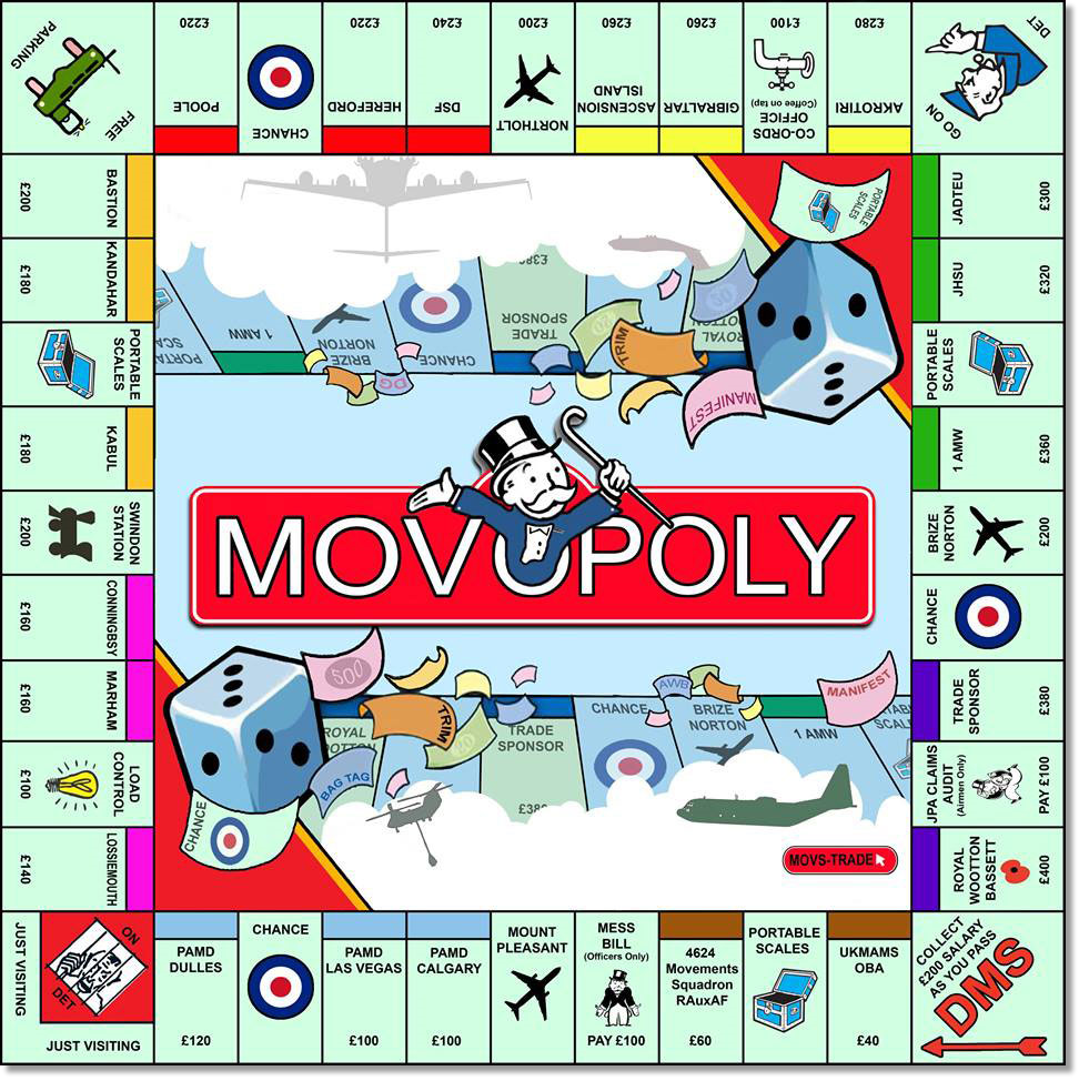 What I’m looking for is your input to create a Movers' Trade Monopoly board called MOVOPOLY, it’s just a bit of fun… some of you will know I have done this before and it's displayed on a particular mess wall.
