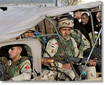 Egyptian military police at the Almaza military airport where bodies of soldiers who died in attacks in north Sinai were given to relatives for burial, in Cairo, January 30, 2015. Associated Press