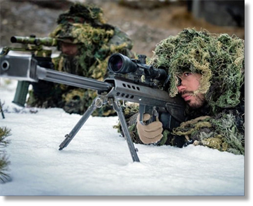 A sniper and spotter from the Spanish Lepanto Battalion line up their target as part of an exercise near Folldal during Exercise Trident Juncture. Photo by 1st German/Netherlands Corps