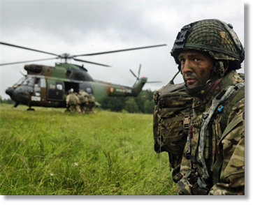 A British Parachute Regiment soldier prepares to load a helicopter during a simulated medical evacuation at the Hohenfels Training Area in Germany, June 17, 2016. Sgt. Seth Plagenza/US Army