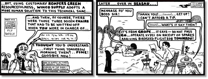 People may consider that the adventures of Messers. Ad Minn and Org at Wootton Lynestoke bear a resemblance to events, people and routine current at R.A.F. Lyneham and on its associated trunk route (Lyneham – Tobuk/El Adem – Aden/Khormaksar – Gan Island – Singapore/Changi), and that beyond this sphere of activity there would be no interest in their doings.