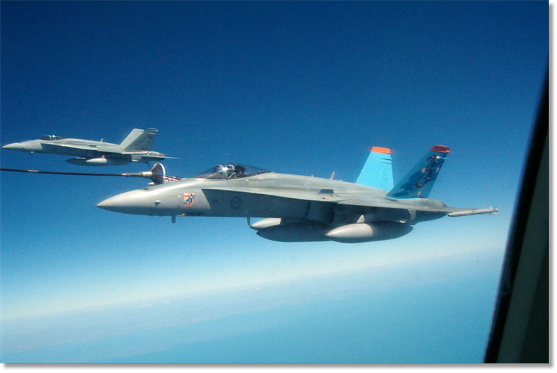 B707 AAR SORTIES - On PB08 We got the chance to fly our guests on one of the last couple of air-to-air refueling sorties flown by our B707 AAR tankers. After all my years with the RAF & the RAAF I’d never been down the back watching fighters ‘tank’. I was 64 years old at the time, and with 35 years in RAF/RAAF uniform, but I still climbed down out of the B707 on an all-time high.