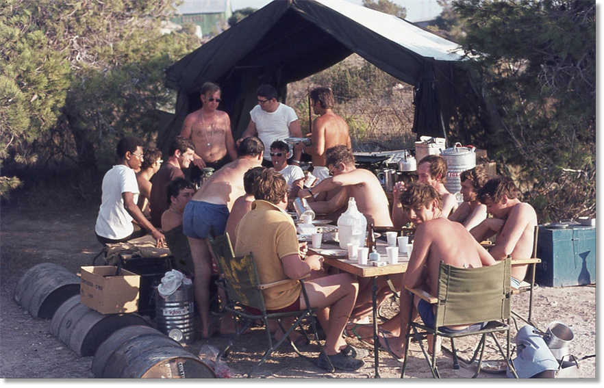 Drinks were obtained by a mess bar chit system, and it soon became clear that the guests were in a happy and generous mood. Almost every order at the bar included a drink for the barman and as we all took a turn at each of the duties, we quickly amassed quite a lot of beer and spirit credits. We made sure that we would benefit from this bonanza by moving some crates of beer to the accommodation area for future consumption.