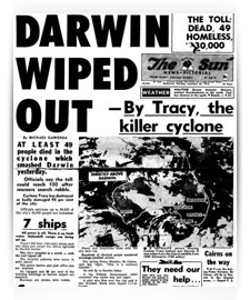 And on the topic of what was my most memorable Christmas so far: 1974, in Darwin, as a callow youth, and RAAFie Singly, we were all quite complacent leading up to Christmas as there'd been a bit of a blow earlier in the month from a Cyclone that wasn't really serious … or so we reckoned! Then on Christmas Eve all 40-odd thousand Top Enders were celebrating the imminent arrival of the fat bearded bloke and instead we got Tracy … with her 200+ km/hr winds and rain, which proceeded to pretty much flatten the town, and bring us all back to reality … sort of.
