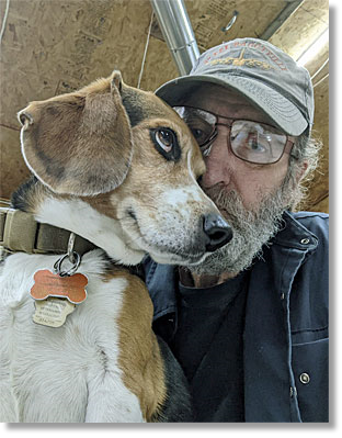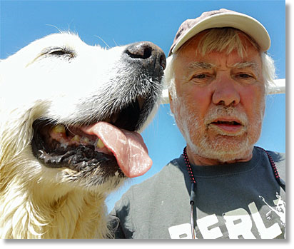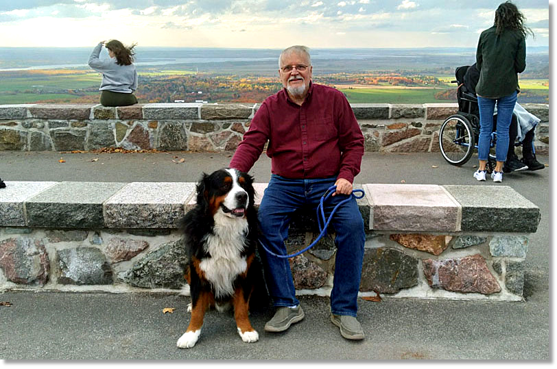 Bernie and me going walkies in the Gatineau Hills last month