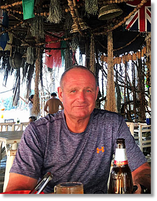 Karl Hibbert is enjoying a cold one at the Haad Son Resort, Thailand