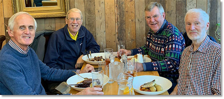 Picture: Four Old Fools (movers all) relaxing after a strenuous round on a soggy golf course! L to R: Peter Gaskin, Tony Waddell, Tim Newstead and Steve Martin.
